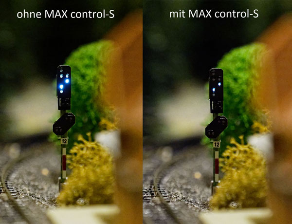 Ob Lichtsignal, Formsignalbeleuchtung oder andere Signalbilder, mit dem MAX control-S erzeugen Sie im Handumdrehen realistische Signalbilder nach Ihren Wünschen. Das funktioniert sowohl auf analog oder digital gesteuerten Modellbahnanlagen und auf Modellbahnen, die gleichzeitig digital und analog betrieben werden.
