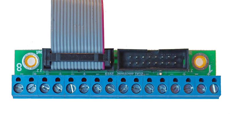 Die Anschlussplatine gibt es im Set mit einem 35 cm langem Anschlusskabel oder einzeln. Ein Flachbandkabel mit individueller Länge kann hier mitbestellt werden.